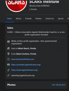 Use of SCARS (Society of Citizens Against Relationship Scams Inc.) copyrighted content is a Federal Crime.