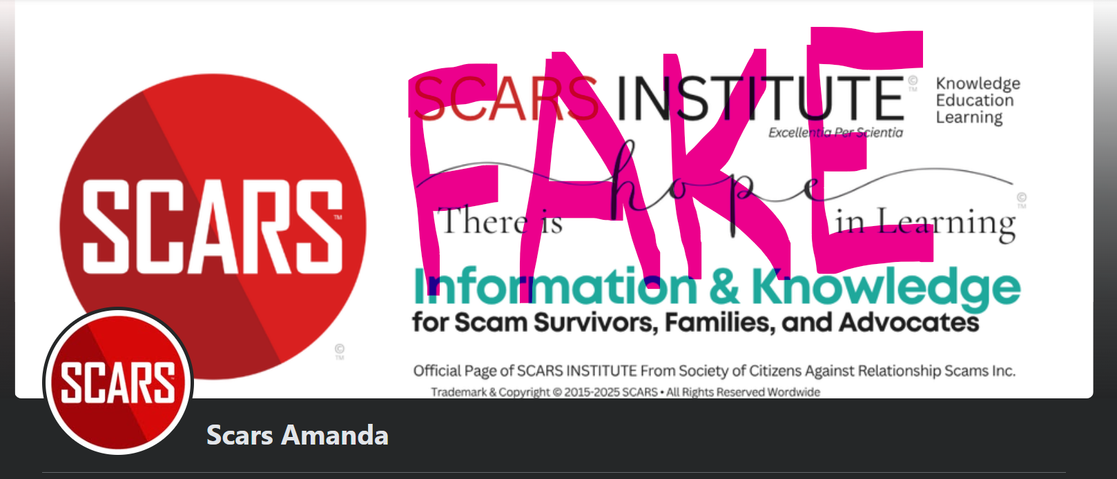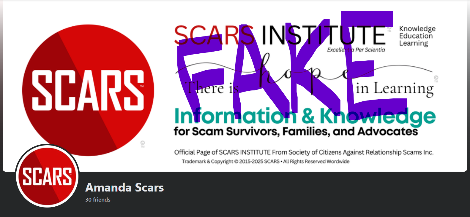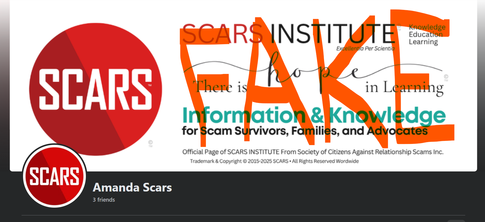 To date we have found a total of 17 pages/profiles on Facebook that are impersonating one or more of our official SCARS Institute pages.